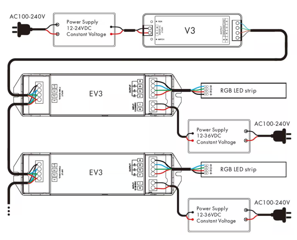 Do you know how light strips are connected to power supplies, controllers, amplifiers, and dimmers when working together? What are the differences between different types of light strips and various drivers? Let’s take a look at the connection diagrams at Meiji Lighting.